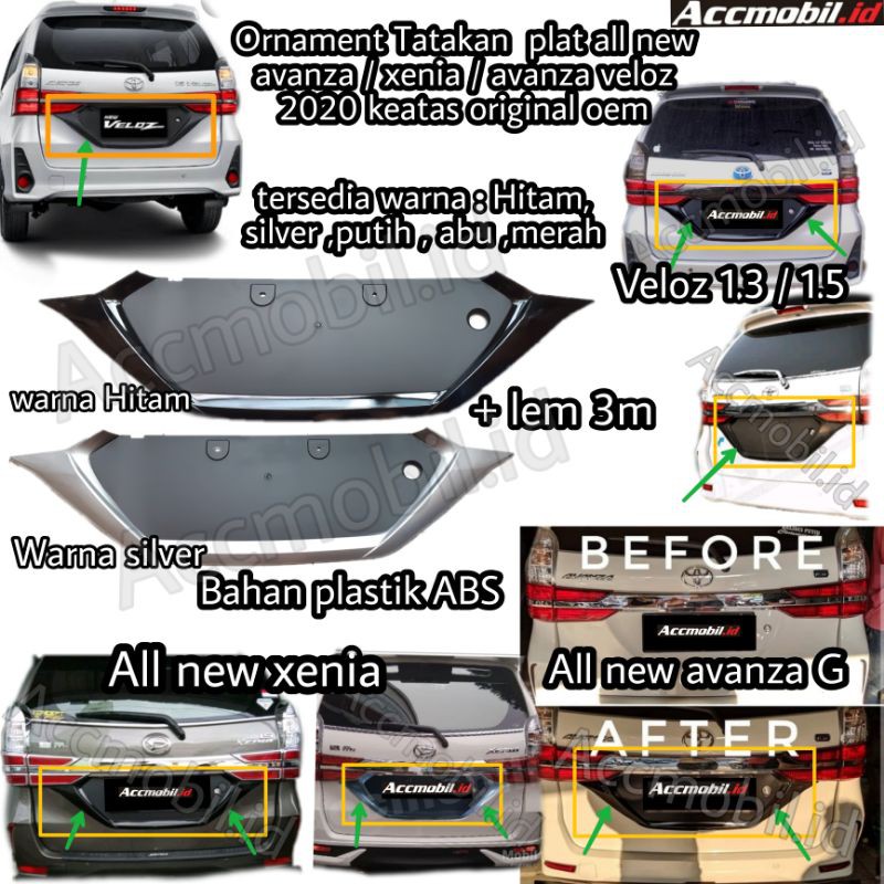 ornamen plat tatakan plat toyota all new avanza xenia model veloz 2019 - up plastik plus cat