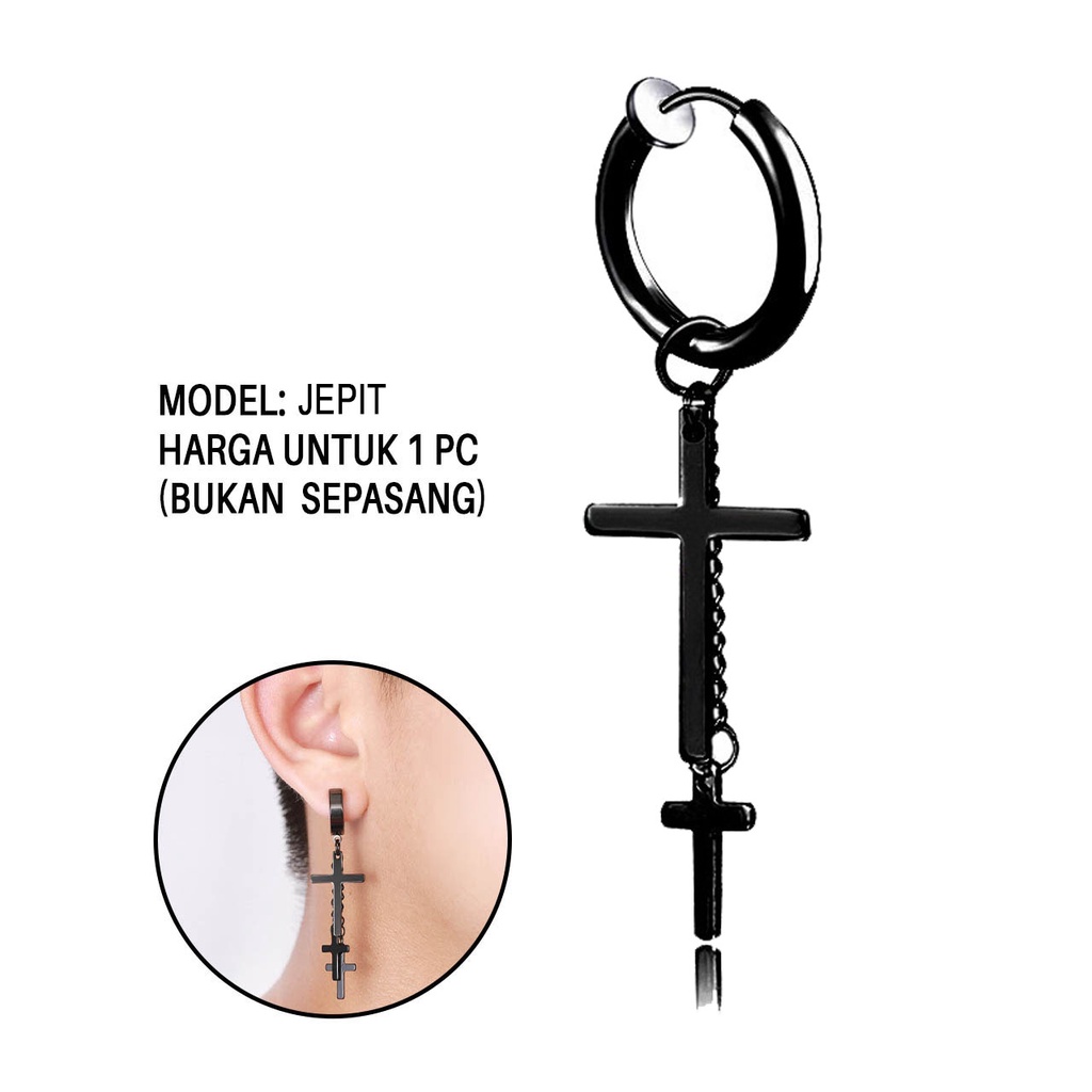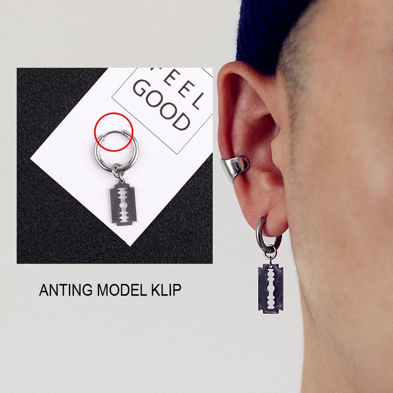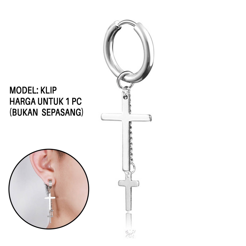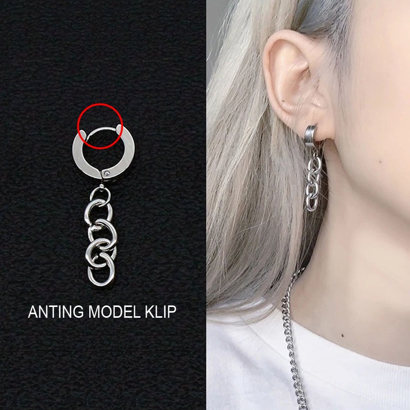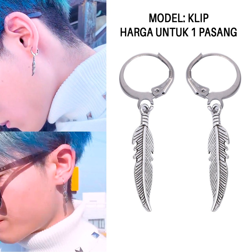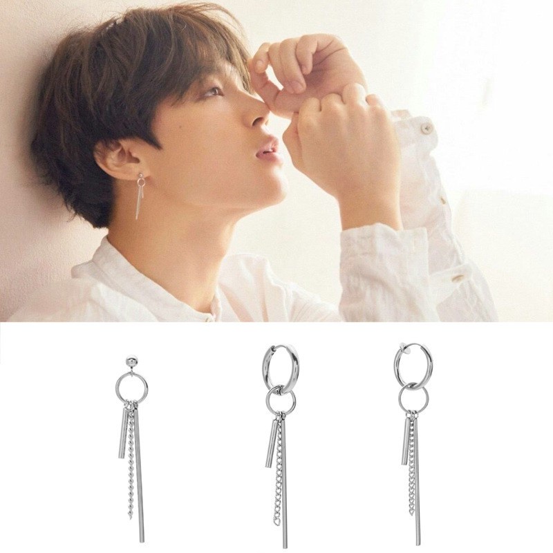Review Anting bangtan korea pria model tusuk klip jepit tindik piercing telinga cowok style bts kpop suga jimin earrings gantung panjang untuk laki terbaru