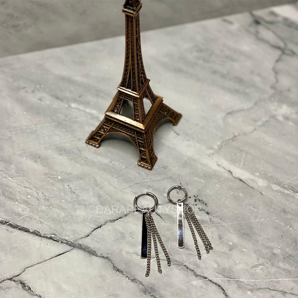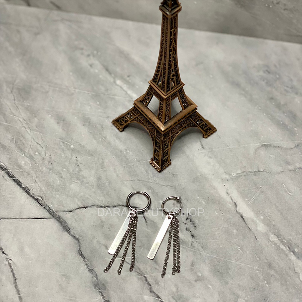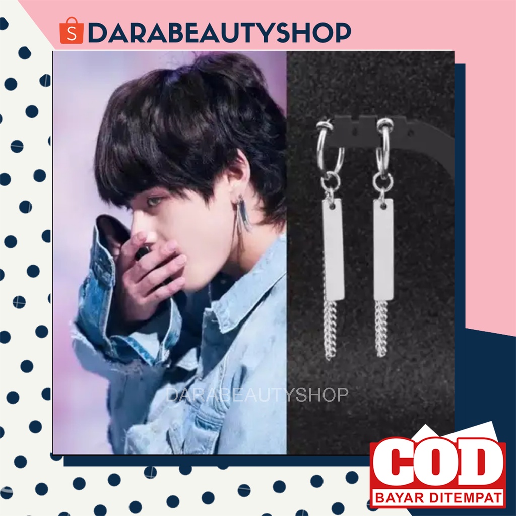 Kelebihan Anting BTS Tindik/Jepit Lapis Stainless Model BTS V Bandul Batang Kotak dan Rantai Fashion Korea KPOP di Toko ini