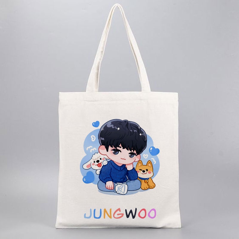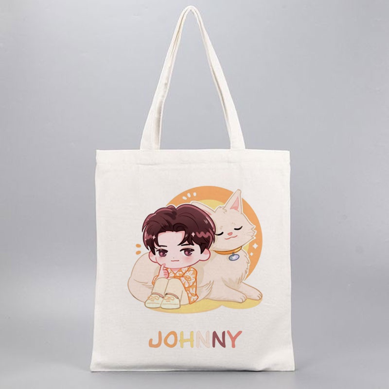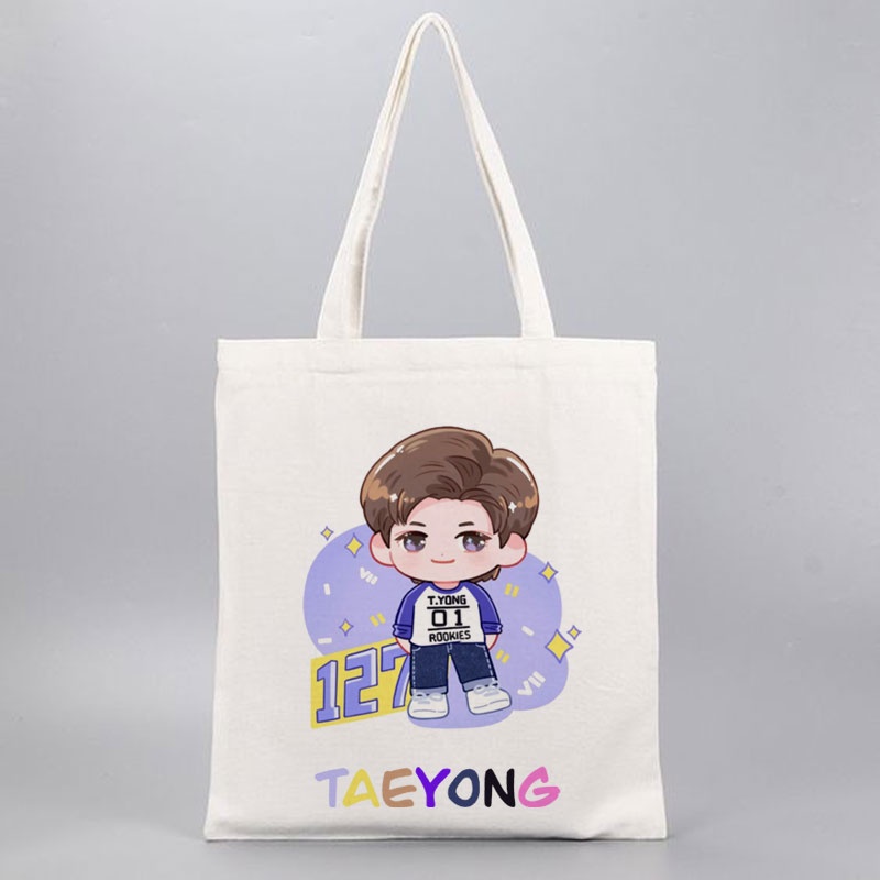 Review Totebag Tote Bag NCT Kanvas Wanita Kpop Korea Haechan Mark JungWoo DoYoung Taeyong Yuta Johnny Taeil terbaru